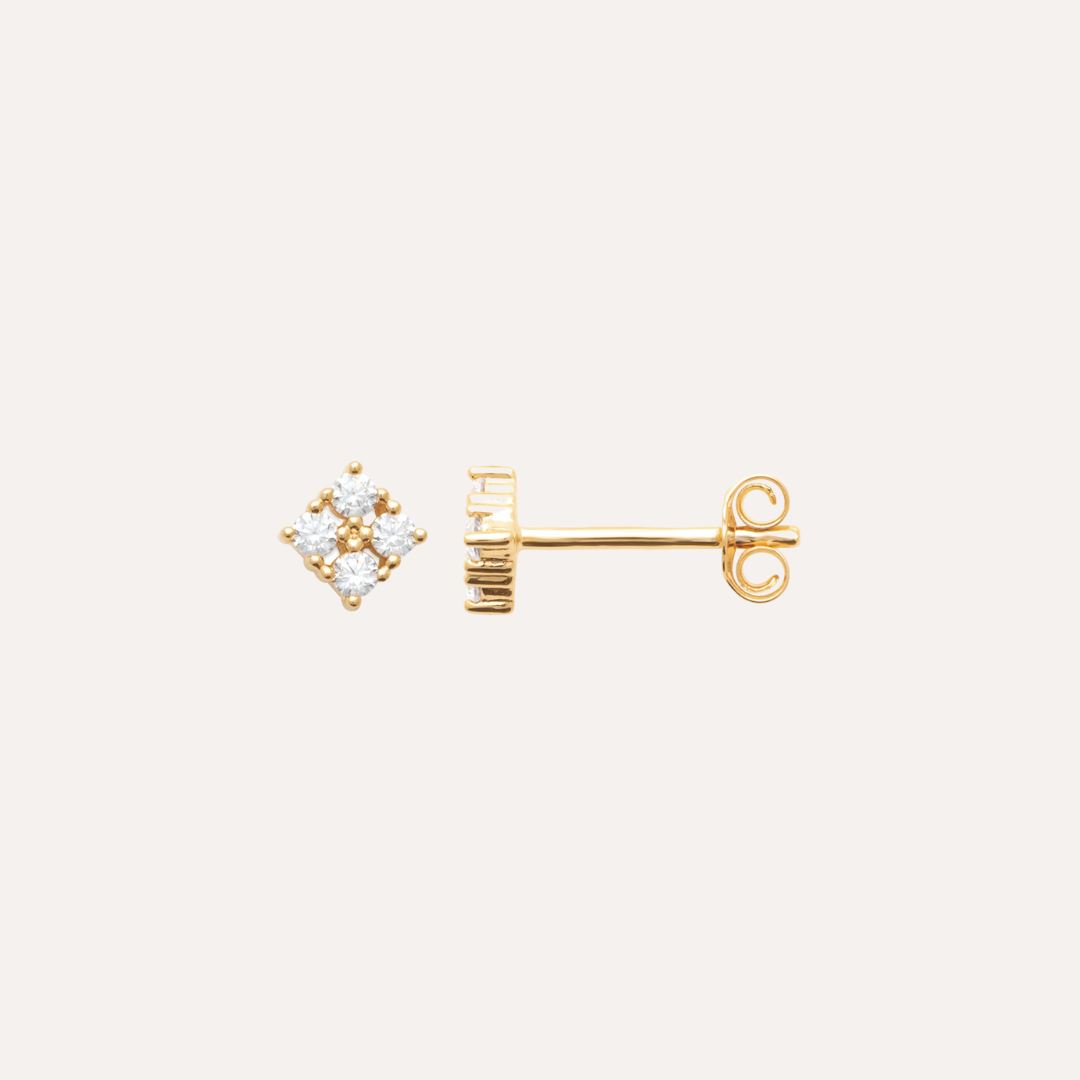 Boucles d’oreilles puces plaqué or avec 4 zirconiums – Élégance et Éclat Intemporel